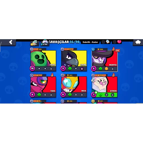 18955 KUPA 56 KARAKTER 82 KOSTÜM MÜKEMMEL HESAP #191180