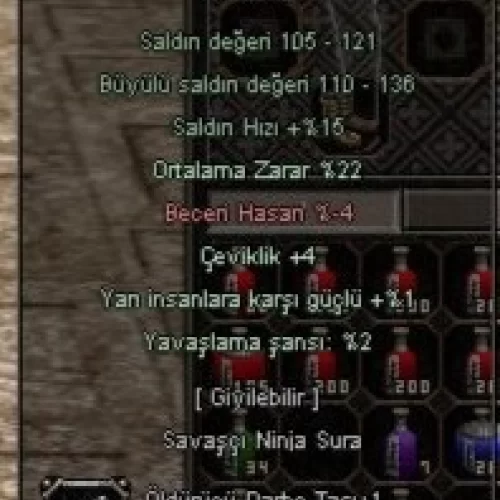 +1500 HP / KILIÇ %4 / ÇİFT EL %4 / ÇAN SAVUNMASI %6 / SALDIRI DEĞERİ +30