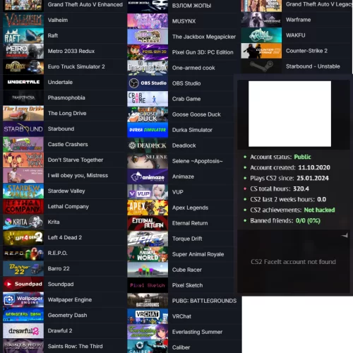 2 MADALYALI 22 LV KNİFE 9590+1112+945 TL CS 2 DOTA 2 ENVANTERLİ VE BAKİYELİ GTA V ETS 2 RAFT 7 Days to Die 12.250 TL STEAM OYUN ENVANTERLİ STEAM LV 15 MADALAYA:5 YIL JETON GLOBAL OFFİCE BADGE JETON WİN:REKABETCİ : WİN YOLDAŞ:41 WİN PRİME RANK :REKABETCİ:BELİRSİZ GÜVEN FAKTÖRÜ:YEŞİL CS GO SEVİYE:22 LV STEAM LV:15 LV ÖZEL ÇİZİMLİ HAREKETLİ ARKA PLAN ÇERÇEVE VE MİNİ PROFİLLİ STEAM PUAN:4512 STEAM BAKİYE:945 TL DOTA 2 ENVANTER:1112 TL DOTA 2 SAAT:1.112 CS GO SAAT:320 ENVANTER:9590 TL MEVCUT İLK MAİL:ALDIM KİŞİNİN VERDİĞİ MAİL İLE TESLİM SAĞLANMAKTA KASA: ADET KASA MEVCUT ENVANTER DEĞERİNE DAHİLDİR FACEİT ESEA KAYDI:FİNDER GÖRSEL 3 RESİMDE MEVCUT HESAP STEAM GİRİŞ BİLGİLERİ VE MAİLİYLE TESLİM EDİLİCEKTİR HESAP MAİL DEĞİŞTİREBİLİR TELEFON EKLEYEBİLİR GUARD YAPABİLİRSİNİZ HESAP BAŞKA ERİŞİM HATASI ALIDIGI ZAMAN HESAP ALICI SORUMLUGU ALTINDADIR OYUNLAR :CS GO 2 PRİME GTA V RAFT Valheim 7 Days to Die Metro 2033 Redux Euro Truck Simulator 2 Undertale Phasmophobia The Long Drive Starbound Castle Crashers Don't Starve Together I will obey you, Mistress Stardew Valley Lethal Company Krita Left 4 Dead 2 R.E.P.O. Barro 22 Soundpad Wallpaper Engine Geometry Dash Drawful 2 Saints Row: The Third Buckshot Roulette Tomb Raider ВЗЛОМ ЖОПЫ MUSYNX İLAN YAYINDAYSA SORMADAN ALABİLİRSİNİZ 2-5 DK İÇİNDE TESLİM EDİYORUM BÜTÇENİZE GÖRE HER İLAN BULUNMAKTADIR DİĞER İLANLARIMA BAKMANIZI ÖNERİRİM