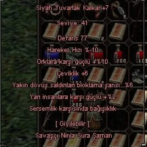 +7 SİYAH YUVARLAK KALKAN (YARI 2, SERSEM, YAKIN DÖVÜŞ SALDIRI BLOK 6, ÇEVİK 6, ORK 10)