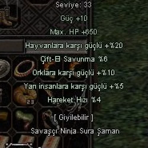 +4 DERİ ÇİZME (2K HP, KILIÇ 6, YAVAŞLAMA 3, KRİTİK 5, MAX.SP 20)