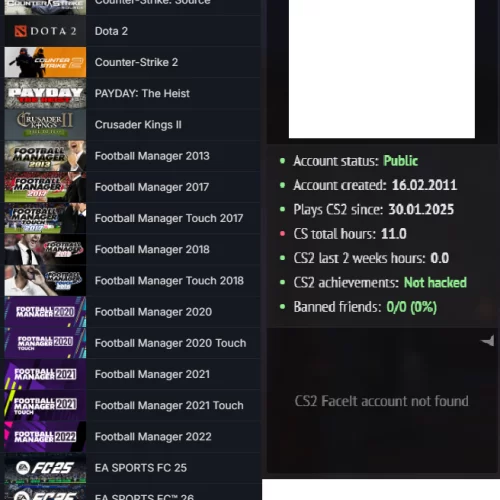 4 MADALYALI 2 LV EA SPORTS FC 25-26 Football Manager 2013-2017-2018-2020-2021-2022 8750 TL STEAM OYUN ENVANTERLİ STEAM LV 9 MADALAYA:10 YIL JETON 5 YIL JETON GLOBAL OFFİCE BADGE JETON SADAKAT ROZETİ WİN:REKABETCİ : WİN YOLDAŞ: WİN PRİME RANK :REKABETCİ:BELİRSİZ GÜVEN FAKTÖRÜ:YEŞİL CS GO SEVİYE:9 LV STEAM LV:9 STEAM YIL:15.9 YIL STEAM PUAN:9.019 İSTEDİĞİNİZ HAREKETLİ ALABİLİRSİNİZ STEAM BAKİYE: CS GO SAAT: ENVANTER:250 TL MEVCUT İLK MAİL:ALDIM KİŞİNİN VERDİĞİ MAİL İLE TESLİM SAĞLANMAKTA KASA: ADET KASA MEVCUT ENVANTER DEĞERİNE DAHİLDİR FACEİT ESEA KAYDI:FİNDER GÖRSEL 3 RESİMDE MEVCUT HESAP STEAM GİRİŞ BİLGİLERİ VE MAİLİYLE TESLİM EDİLİCEKTİR HESAP MAİL DEĞİŞTİREBİLİR TELEFON EKLEYEBİLİR GUARD YAPABİLİRSİNİZ HESAP BAŞKA ERİŞİM HATASI ALIDIGI ZAMAN HESAP ALICI SORUMLUGU ALTINDADIR OYUNLAR :CS GO 2 PRİME EA SPORTS FC™ 26 EA SPORTS FC 25 PAYDAY: The Heist Crusader Kings II Football Manager 2013 Football Manager 2017 Football Manager Touch 2017 Football Manager 2018 Football Manager Touch 2018 Football Manager 2020 Football Manager 2020 Touch Football Manager 2021 Football Manager 2021 Touch Football Manager 2022 Dota 2 Counter-Strike: Source İLAN YAYINDAYSA SORMADAN ALABİLİRSİNİZ 2-5 DK İÇİNDE TESLİM EDİYORUM BÜTÇENİZE GÖRE HER İLAN BULUNMAKTADIR DİĞER İLANLARIMA BAKMANIZI ÖNERİRİM