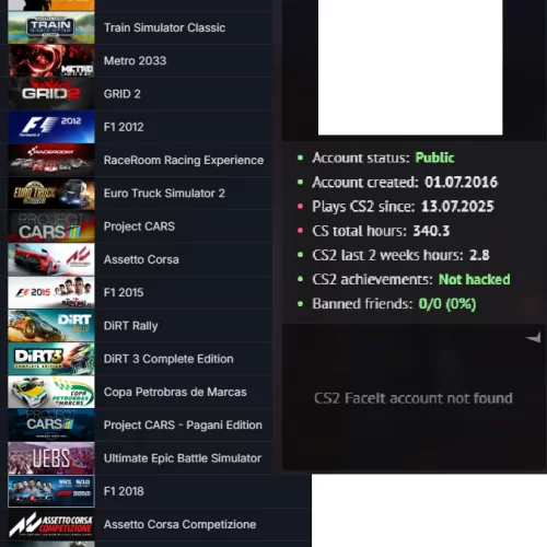 4 MADALYALI 20 LV ETS 2 Train Simulator Classic Ultimate Epic Battle Simulator 4200 TL STEAM OYUN ENVANTERLİ STEAM LV 10 MADALAYA:2017 HİZMET MADALYASI 5 YIL JETON GLOBAL OFFİCE BADGE JETON SADAKAT ROZETİ WİN:REKABETCİ : WİN YOLDAŞ:51 WİN PRİME RANK :REKABETCİ:BELİRSİZ GÜVEN FAKTÖRÜ:YEŞİL CS GO SEVİYE:20 LV 2026 HİZMET MADALYASI ALICAK STEAM LV:10 LV ÖZEL ÇİZİM MEVCUT ARKA PLAN MEVCUT STEAM YIL:9.9 YIL 10 YIL JETON GELİCEK STEAM PUAN: STEAM BAKİYE: CS GO SAAT:340 İLK MAİL:ALDIM KİŞİNİN VERDİĞİ MAİL İLE TESLİM SAĞLANMAKTA KASA: ADET KASA MEVCUT ENVANTER DEĞERİNE DAHİLDİR FACEİT ESEA KAYDI:FİNDER GÖRSEL 3 RESİMDE MEVCUT ENVANTER: TL MEVCUT OYUNLAR :CS GO 2 PRİME Train Simulator Classic Euro Truck Simulator 2 Assetto Corsa Ultimate Epic Battle Simulator Assetto Corsa Competizione F1 2018 Metro 2033 GRID 2 F1 2012 RaceRoom Racing Experience Project CARS F1 2015 DiRT Rally DiRT 3 Complete Edition HESAP STEAM GİRİŞ BİLGİLERİ VE MAİLİYLE TESLİM EDİLİCEKTİR HESAP BAŞKA ERİŞİM HATASI ALIDIGI ZAMAN HESAP ALICI SORUMLUGU ALTINDADIR İLAN YAYINDAYSA SORMADAN ALABİLİRSİNİZ 2-5 DK İÇİNDE TESLİM EDİYORUM BÜTÇENİZE GÖRE HER İLAN BULUNMAKTADIR DİĞER İLANLARIMA BAKMANIZI ÖNERİRİM