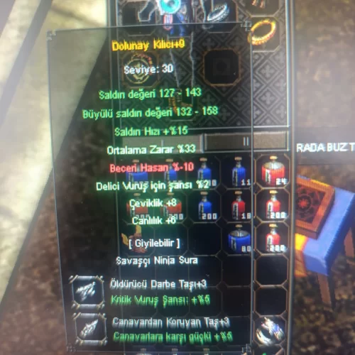 Hesabım 49 lvl olup skill kaybı yoktur at 17 lvl 2 G li dir Büyülü zırh Kitapları da Hazır sayılır @@@@ itemli İtemsiz satılır @ Diğer Fotoğraflar yüklenemedei detaylı bilgi için pm atın lütfen yanında şamanda verilecektir...
