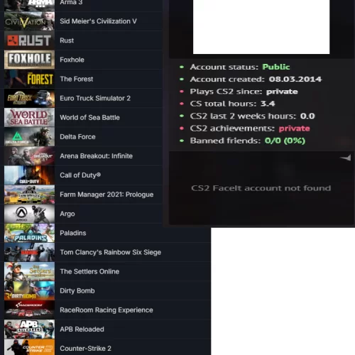 5126 RUST SAATLİ NİNJA SUİT 172 SKİNS SCUM ARMA 3 BFE V ETS 2 Foxhole 11.500 TL STEAM OYUN ENVANTERLİ STEAM LV 8 4 MADALYALI FACEİT MADALAYA:10 YIL JETON 5 YIL JETON GLOBAL OFFİCE BADGE JETON SADAKAT ROZETİ WİN:REKABETCİ : WİN YOLDAŞ: WİN PRİME RANK :REKABETCİ:BELİRSİZ GÜVEN FAKTÖRÜ:YEŞİL CS GO SEVİYE:2 LV STEAM LV:8 LV ARKA PLAN MEVCUT STEAM PUAN:2.261 STEAM BAKİYE: CS GO SAAT: RUST SAAT:5126 SAATLİ ÖZEL RUST Ninja Suit RUST Nomad Outfit RUST SKİN SAYISI:172 ADET İLK MAİL:ALDIM KİŞİNİN VERDİĞİ MAİL İLE TESLİM SAĞLANMAKTA KASA: ADET KASA MEVCUT ENVANTER DEĞERİNE DAHİLDİR FACEİT ESEA KAYDI:FİNDER GÖRSEL 3 RESİMDE MEVCUT HESAP STEAM GİRİŞ BİLGİLERİ VE MAİLİYLE TESLİM EDİLİCEKTİR HESAP MAİL DEĞİŞTİREBİLİR TELEFON EKLEYEBİLİR GUARD YAPABİLİRSİNİZ HESAP BAŞKA ERİŞİM HATASI ALIDIGI ZAMAN HESAP ALICI SORUMLUGU ALTINDADIR OYUNLAR :CS GO 2 PRİME RUST SCUM ARMA 3 Sid Meier's Civilization V Foxhole The Forest Euro Truck Simulator 2 World of Sea Battle Delta Force Arena Breakout: Infinite Call of Duty® FREE İLAN YAYINDAYSA SORMADAN ALABİLİRSİNİZ 2-5 DK İÇİNDE TESLİM EDİYORUM BÜTÇENİZE GÖRE HER İLAN BULUNMAKTADIR DİĞER İLANLARIMA BAKMANIZI ÖNERİRİM