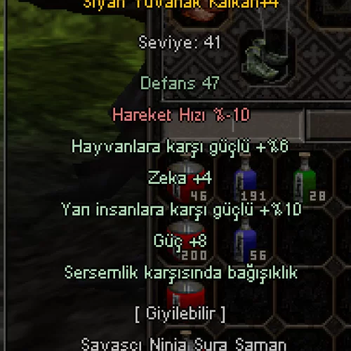+6 KEDİ ELBİSE (1500hp - 15STR - 10KILIÇ 4ÇAN 3SP ABSORBE - +3 HIZ KORUMA SAVUNMA TAŞLI)
