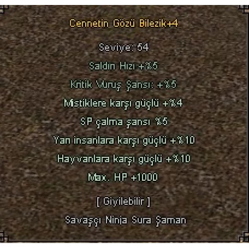 +4 CENNET BİLEZİK 1000 HP 10 YARI İNSAN (5 EFSUN)