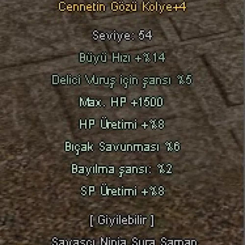 +4 CENNETİN GÖZÜ KOLYE 1500 HP (5 EFSUN)