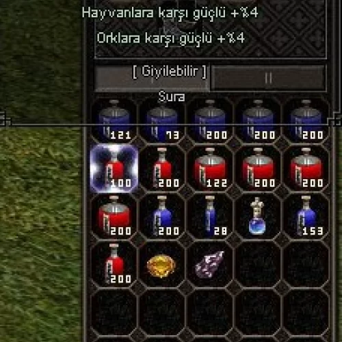 40 LWL ŞAMANI VAR 55 LWL BÜYÜLÜ KESKİNLİK SURA +9 31 ORT DOLU VAR SKİLLER KESKİNLİK -- BÜYÜLÜ ZIRH -- DEHŞET G1 FULL CENNET SET +5 +6 5 EFSUN SYK +5 4 EFSUN ANKA  AYAKKABI +4 5 EFSUN KASK +5 4 EFSUN 11 SEVİYE ZIRHLI AT