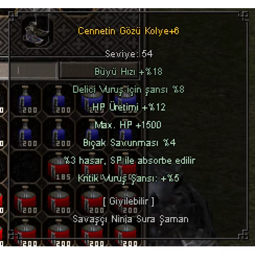 +6 CENNET KOLYE 1.5K HP 5 KRİTİK 12 HP ÜRETİMİ