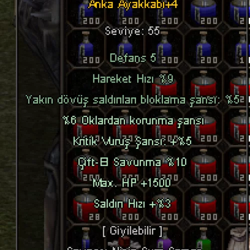 +4 ANKA AYAKKABI 1.5K HP 5 KRİTİK 10 ÇİFT-EL 3 SALDIRI HIZI