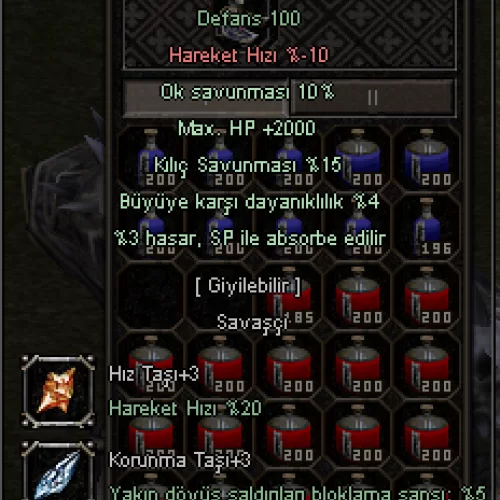 +6 MAVİ TAŞ ZIRH 2K HP 15 KILIÇ 10 OK