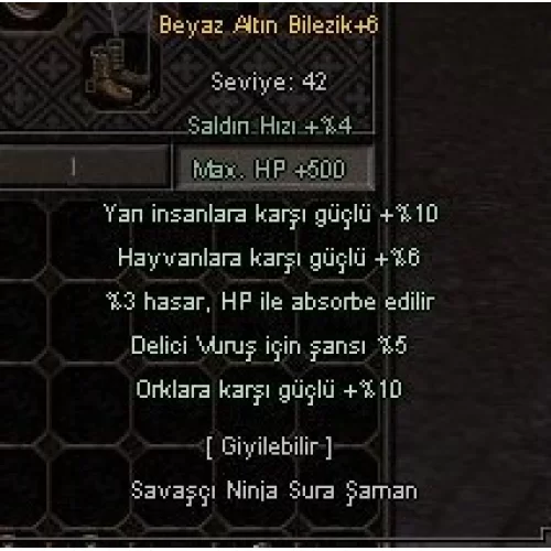 +6 BEYAZ ALTIN BILEZIK YARI 10-DELİCİ 5-HP ABSORBE 3-ORK 10-HAYVAN 6