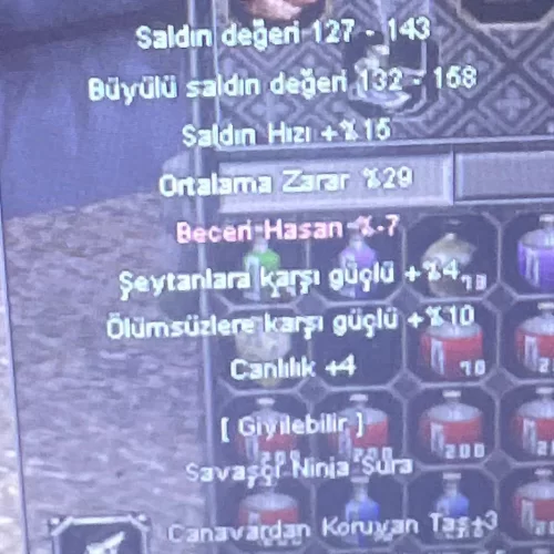65 LVL BEDENSEL LANET SON 1 KİTAP KALDI... ATI ASKER.... HAVA KILICI ÖFKE İKİSİ G1... KILIÇ ÇEVİRME M7... İÇERİSİNDE RESİMLERDEN HARİÇ +8 KORKU MASKESİ 10 BÜYÜ HP ÜRETİMİ 12 HAYVAN 10 5 EFSUN....+7 ABANOZ 20 EŞYALI.....+6 CENNET BİLEZİK 1K HP, 10 HASAR HP 5 EFSUN...1 ENVANTERE YAKIN TEC YÜZÜĞÜ MEVCUT. HESABIN YANINDA 41 LVL VADİ FARMI İÇİN 10 LVL ATLI BEDENSEL VE 2. KÖY FARMI İÇİN 35 LVL 8 LVL ATLI BEDENSEL MEVCUTTUR.
