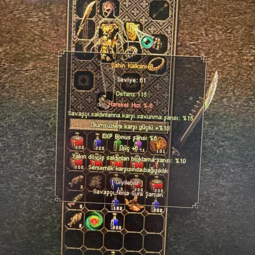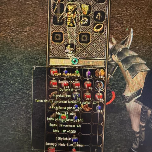 DİĞER İTEMLER : +6 ALTIN KOLYE 1500 HP 10 KRİTİK +6 CENNET BİLEZİK 10 BÜYÜ 2000 HP +7 KORKU 15 BÜYÜ