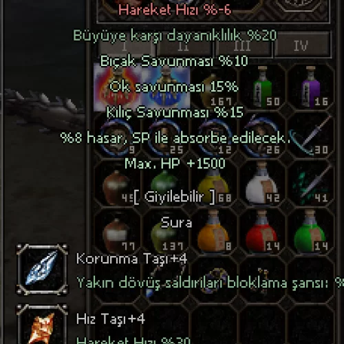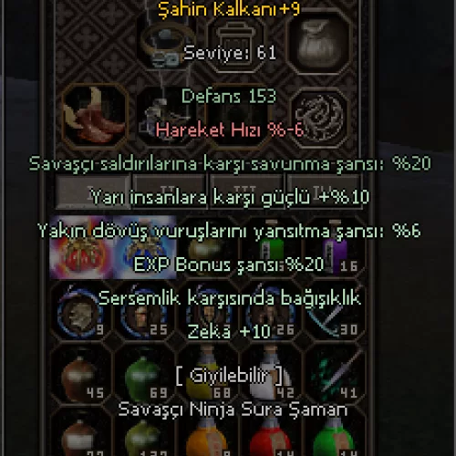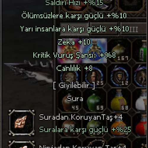 FULL İTEMLİ SATILACAKTIR +9 ZEHİR +9 KARABÜYÜ ZIRH +9 ABANOZ +9İNCİ KOLYE +7 MEST EDEN +7 CENNET KÜPE +9 BEYAZ ALTIN KOLYE +7 KARABÜYÜ ZIRH +9 ASLAN AGZI ,KAPLAN VE ŞAHİN KALKAN 3T PARA VE 1K EP MEVCUTTUR