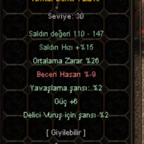 +8 KDP 26 ORTALAMA +2 YAVAŞLATMA +6 GÜÇ +2 DELİCİ VURUŞ TAŞLAR İSE +2 KRİTİK VURUŞ +2 CANAVAR