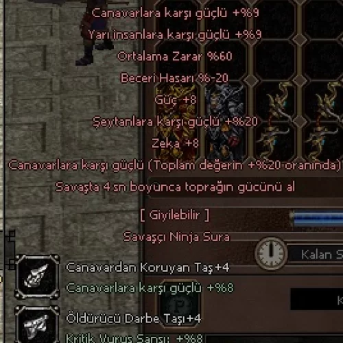 Aragonit Zodyak Kılıç +8 60 ORT 8 GÜÇ 8 ZEKA 20 ŞEYTAN 6 ve 7 efsunlu %20 Canavarlı