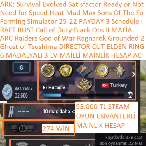 ARC Raiders NFS HEAT ELDEN RING RUST RAFT Grounded 2 95.000 TL STEAM OYUN ENVANTERLİ STEAM LV 8 6 MADALYALI 3 LV MADALAYA:2021 2023 2025 HİZMET MADALYASI 5 YIL JETON 1 SEZON JETON GLOBAL OFFİCE BADGE JETON WİN:REKABETCİ : WİN YOLDAŞ:274 WİN PRİME RANK :REKABETCİ:BELİRSİZ GÜVEN FAKTÖRÜ:YEŞİL CS GO SEVİYE:3 LV STEAM LV:8 LV HAREKETLİ ARKA PLAN ÇERÇEVE VE MİNİ PROFİLLİ STEAM PUAN:32.686 İSTEDİĞİNİZ ALABİLİRSİNİZ STEAM BAKİYE:15 CS GO SAAT:879 CS 2 ENVANTER: TL MEVCUT İLK MAİL:ALDIM KİŞİNİN VERDİĞİ MAİL İLE TESLİM SAĞLANMAKTA KASA: ADET KASA MEVCUT ENVANTER DEĞERİNE DAHİLDİR HESAP STEAM GİRİŞ BİLGİLERİ VE MAİLİYLE TESLİM EDİLİCEKTİR HESAP MAİL DEĞİŞTİREBİLİR TELEFON EKLEYEBİLİR GUARD YAPABİLİRSİNİZ HESAP BAŞKA ERİŞİM HATASI ALIDIGI ZAMAN HESAP ALICI SORUMLUGU ALTINDADIR STEAM OYUN DEĞERİ:88.000 TL OYUN SAYI:139 AD ARC Raiders 12 NİSAN YASAĞI KALKICAK OYUNLAR :CS GO 2 PRİME ARC Raiders RUST RAFT Ghost of Tsushima DIRECTOR'S CUT God of War Ragnarök The Last of Us™ Part I ELDEN RING Grounded 2 God of War Call of Duty: Black Ops II Farming Simulator 25 ARK: Survival Evolved Ready or Not Satisfactory Farming Simulator 22 StarRupture Fable Anniversary 7 Days to Die ARK: Survival Ascended Witch It Sniper Elite 5 Car Service Together PAYDAY 3 ShellShock Live Schedule I Construction Simulator Boxing School Subnautica: Below Zero Phasmophobia BIGFOOT The Elder Scrolls V: Skyrim Special Edition Dead by Daylight Sniper Elite 4 The Outlast Trials Paint the Town Red Dark Hours Ori and the Blind Forest: Definitive Edition PAYDAY 2 Borderlands 2 ATLAS Mafia Ghost Watchers MIMESIS Sons Of The Forest Who's Your Daddy?! Backrooms: Escape Together RV There Yet? Gang Beasts Need for Speed™ Heat Ultimate Chicken Horse King of Retail Human Fall Flat TerraTech Bloons TD 6 Chained Together Mad Max DEVOUR 60 Seconds! Reatomized Terraria Garry's Mod Content Warning Cat Goes Fishing Yu-Gi-Oh! Legacy of the Duelist Megaloot Liar's Bar The Forest Slime Rancher ALTF4 Golf It! Unrailed! ROUNDS Geometry Dash Paragnosia Green Hell Stick Fight: The Game Thief Simulator Buckshot Roulette Bounty Train Wrap House Simulator? Demo Schedule I: Free Sample FragPunk Banana İLAN YAYINDAYSA SORMADAN ALABİLİRSİNİZ 2-5 DK İÇİNDE TESLİM EDİYORUM BÜTÇENİZE GÖRE HER İLAN BULUNMAKTADIR DİĞER İLANLARIMA BAKMANIZI ÖNERİRİM