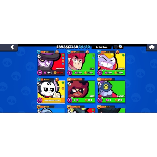 Brawl stars hesap satma 4237 kupa 37 karekter