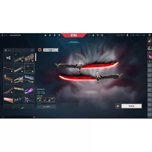 Bıçak = RGX Kelebek, Ayakashi, Zifiri tırpan, Semavi yelpaze, Champions 2024, Karaborsa kelebek, Arcane eldiven, Sırçiçeği Kunai, Uzay geçidi.