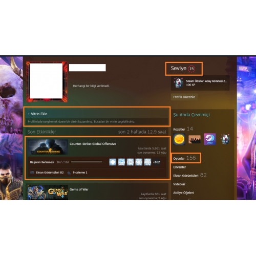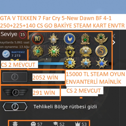 GTA V FAR CRY 5 BF 4-1 15.000 TL STEAM OYUN ENVANTERLİ STEAM LV 15 19 MADALYALI CS 2 MEVCUT 250+225+140 CS GO STEAM BAKİYE STEAM KART ENVANTER Satış Grafiği