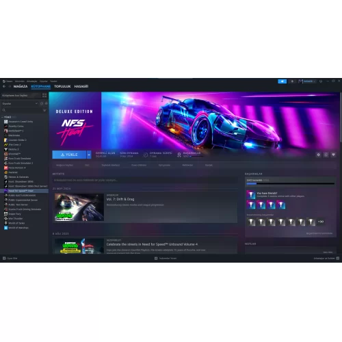 Seviye 5 steam hesabım var içerisinde; asssins creed uniity,asetto corsa,battle field 1 , the crew 2 ,Euro Truck Simulator - Euro Truck Simulator 2 , Forza Horizon 4 , Hunt Showdown 1896 , Need Four Speed Heat , Scania Truck Driving Simulator oyunları vardır.Ücretli ve Ücretsiz oyunlarla beraber toplam 24 tane oyun vardır makul bi fiyatta vereceğim lütfen ciddi alıcılar arasın.Hesabı satmamın nedeni hem maddi hem de oyun oynamamam. Forza Horizon 4 + Need Four Speed Heat i bedavaya veriyorum fiyat makuldur 7000 tl lik hesabı 5500 e veriyorum ve 7000 nin içinde forza ve need four speed yok.