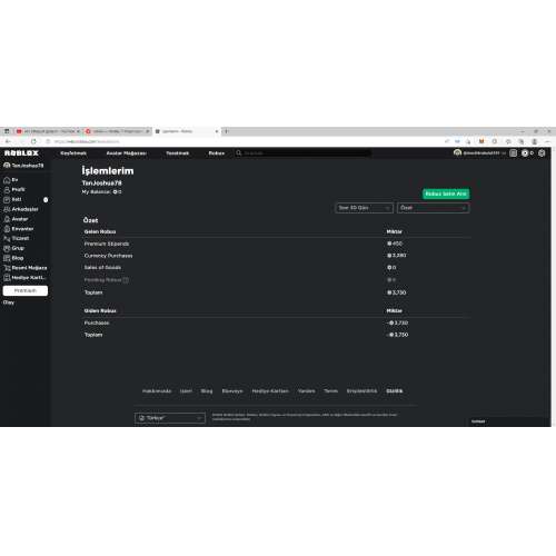 ROBLOX PREMİUM HESAP 3800 ROBUX YATIRILDI DOLU AVATAR