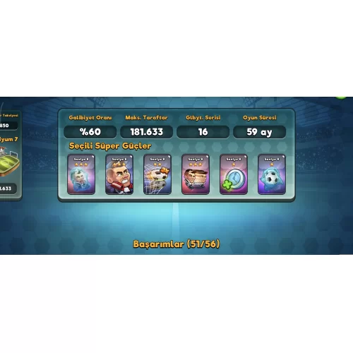 50 Seviye 5 yıllık bir hesaptır. 20+ efsanevi ve 8500 elmas bulunmaktadır. Alıcı kişiye isterse daha fazla bilgi verilir. ACİLDİR LÜTFEN